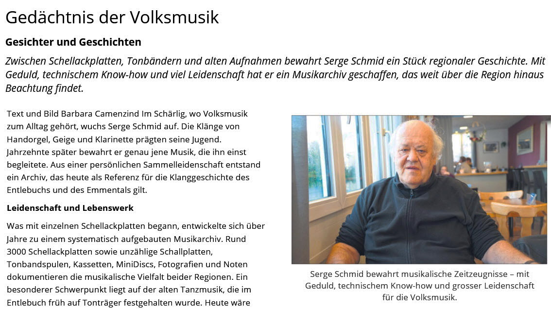 2012: Das Entlebucher und Emmentaler Musikarchiv ist ein weltweit bekanntes Online