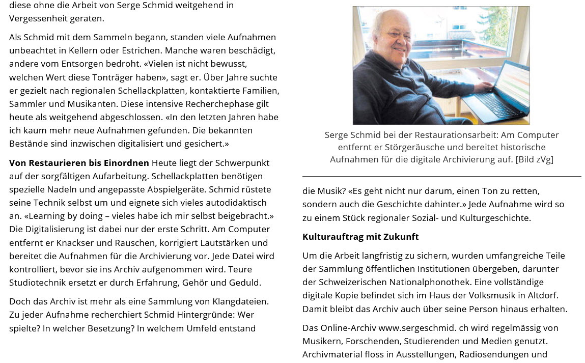 der alten Schweizer Musik von 1901 bis 1945. Sein Wissen und seine Plattensammlung sind sehr