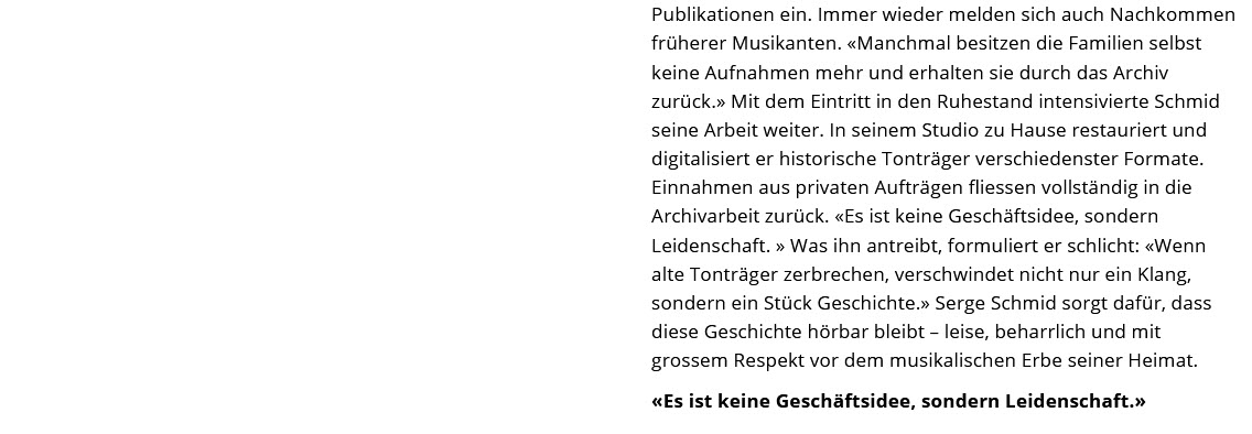 Dank der Zusammenarbeit mit Ricco Bergamin und Christoph Kuhn sind fast alle Tonaufnahmen von Luzi Bergamin digitalisiert.