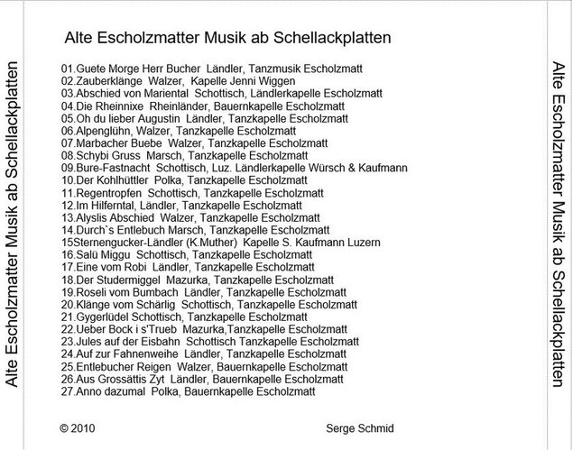 CD Aufnahmen mit alter Entlebucher Musik ab Schellackplatten-Schallplatten-Tonbändern