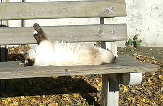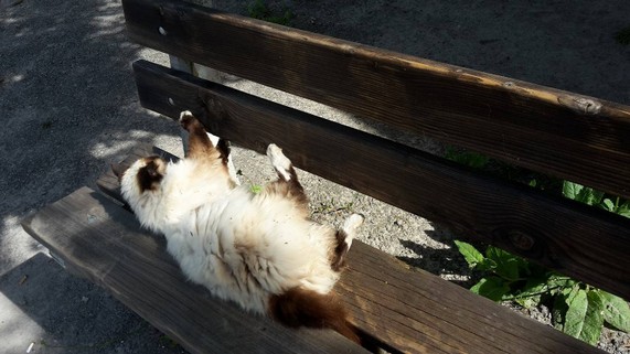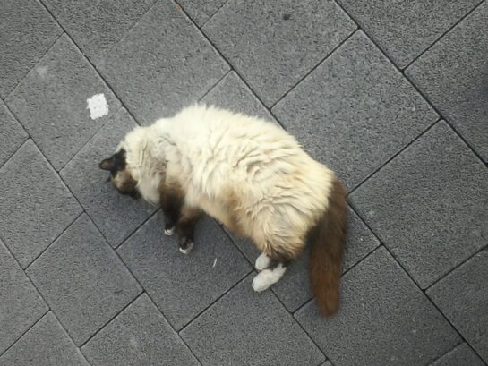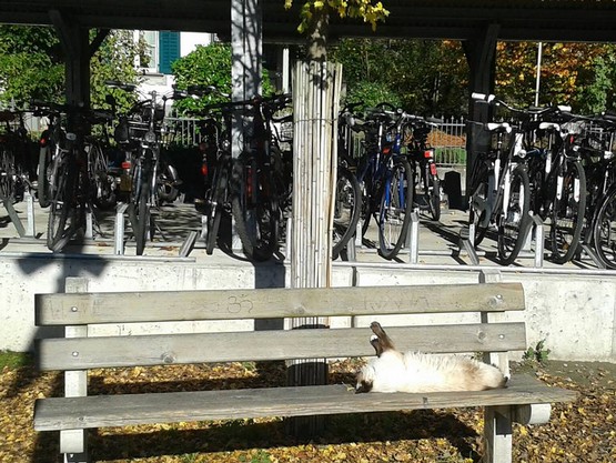 ist mir auf dem Weg zur Arbeit entgegengelaufen, hat mich mit einem "Miau", oder in ihrer Katzensprache begrüsst, sichzur Begrüssung am Boden gewälzt, sich Streicheleinheiten abgeholt und dazu laut geschnurrt, und mich bis an den Bahnhof