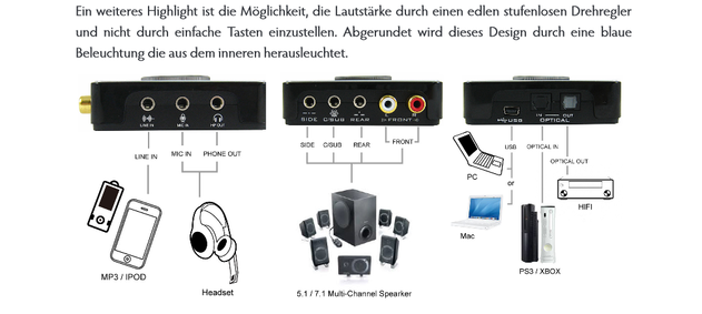 - Digitaler SPDIF-Eingang/Ausgang (koaxial)