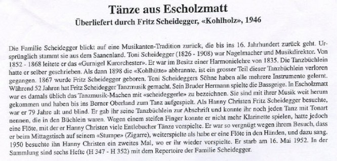 Da beim Brand der Kohlhütte 1898 fast alle Noten verbrannten und Fritz Scheidegger wegen der Blindheit