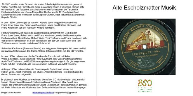 CD Aufnahmen mit alter Entlebucher Musik ab Schellackplatten-Schallplatten-Tonbändern