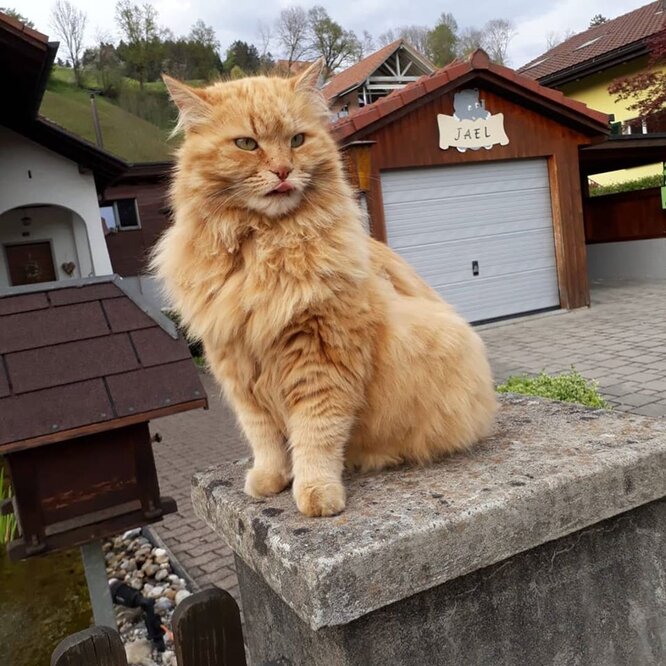Felix, «der Glückliche», trägt seinen Namen zu Recht. Denn mit seinem rotblonden Seidenpelz und den smaragdgrünen Augen ist der stattliche Kater der Prinz der Herzen, nicht nur beim Ehepaar Abplanalp in Langnau, sondern im ganzen Quartier. Und grosses Glück hat Felix schon mehr als einmal gehabt.