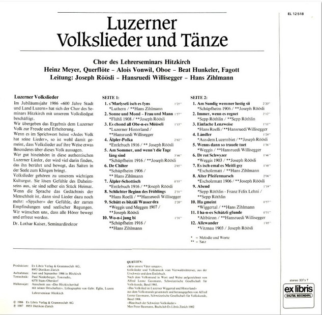(16. Jhd.), 2 Sprechstimmen, Bläser, Orgel (1986) • Tänze aus der Innerschweiz,