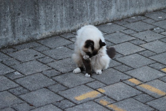 ist mir auf dem Weg zur Arbeit entgegengelaufen, hat mich mit einem "Miau", oder in ihrer Katzensprache begrüsst, sichzur Begrüssung am Boden gewälzt, sich Streicheleinheiten abgeholt und dazu laut geschnurrt, und mich bis an den Bahnhof