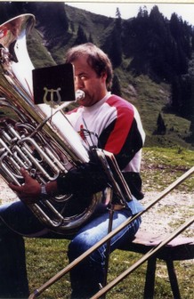 2013 als Tubasolist mit dem Teddybär von Karl Hofer und 40 Jahre Blasmusik